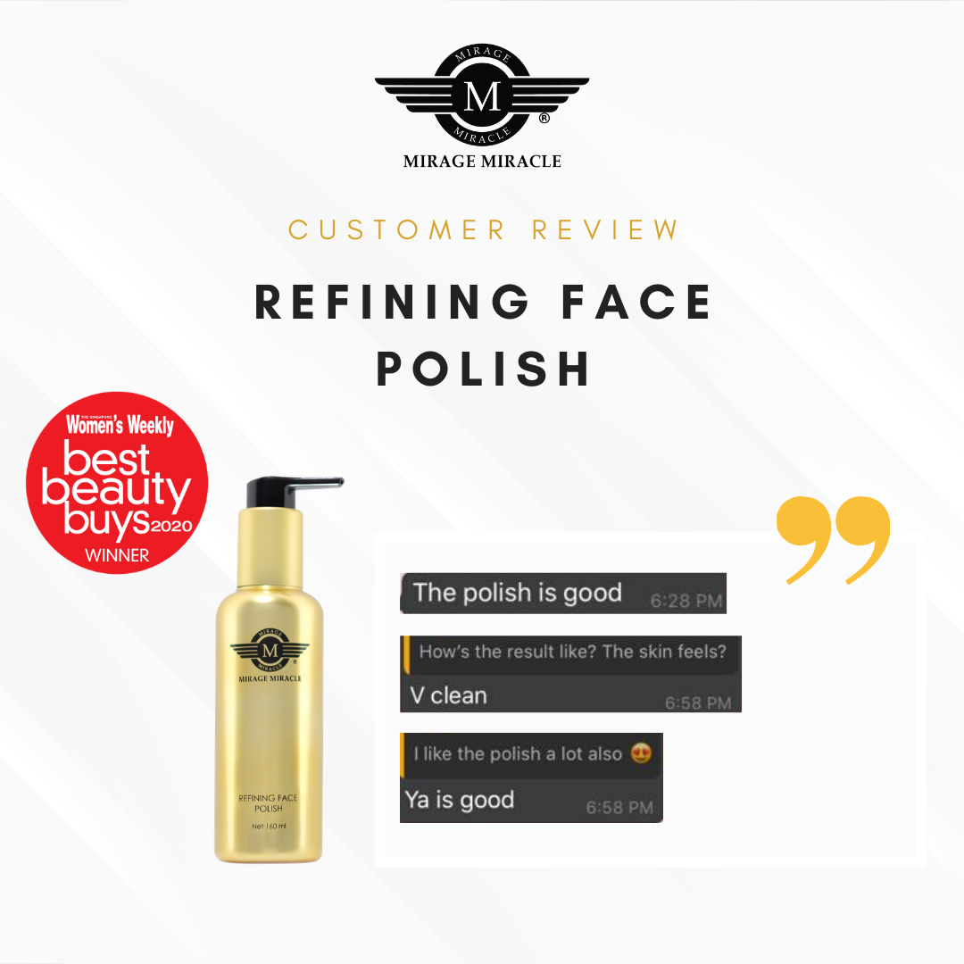 This set includes: Mirage Miracle’s Refining Face Polish, Glow Moisturizer Gel and Glow Serum